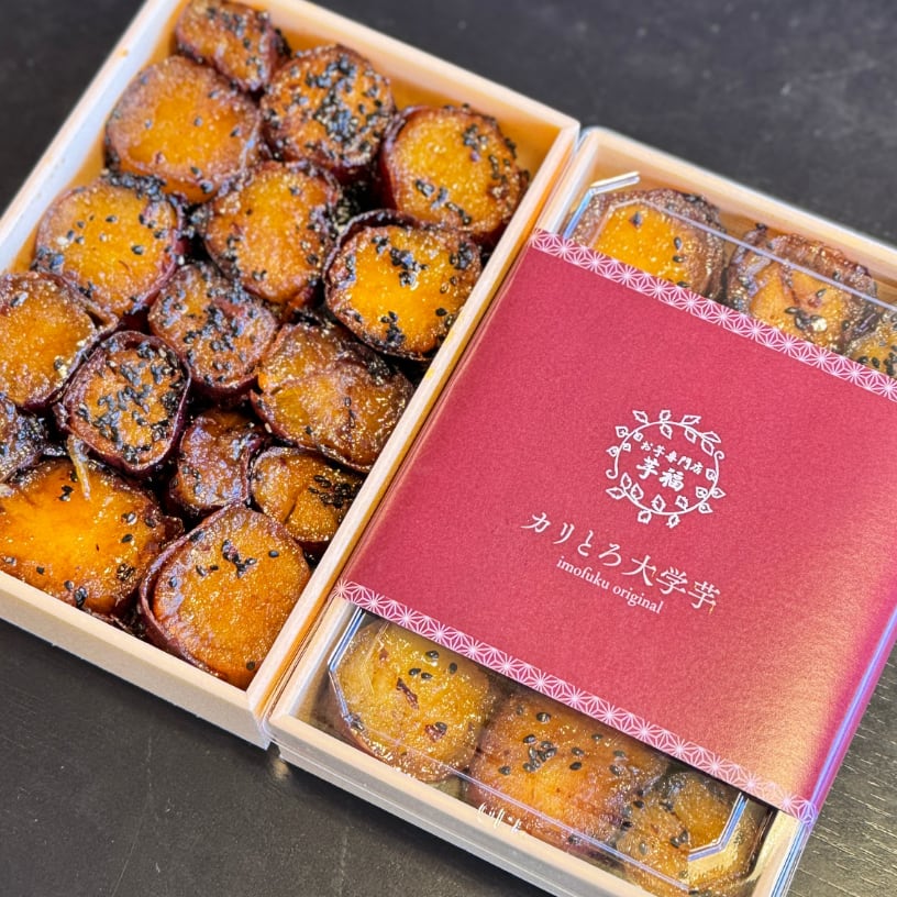 外カリっ中とろっとの新食感大学芋は、芋福創業時から愛されている一番人気商品です。